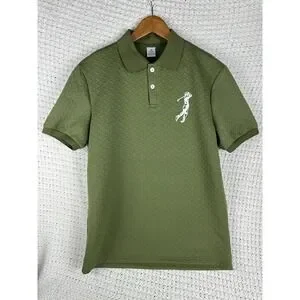 Mens Golf Polo Shirt Medium Green Textured Performance Stretch Casual