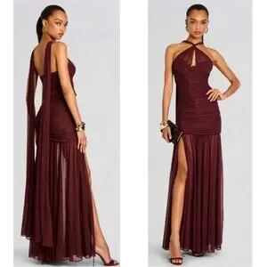Retrofete Maisie Ruched Draped Halterneck Maxi in Port Red Size XXL is brand new with tags! Sold out everywhere in this color and size!