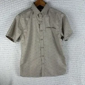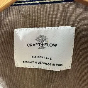 Craft + Flow Boys Button Up Shirt Large Tan Short Sleeve Casual Pocket