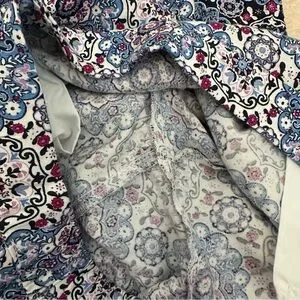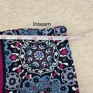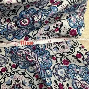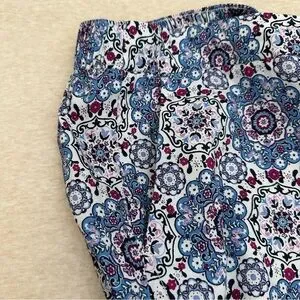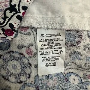 Loft Women's Size L Floral Linen Blue Cotton Elastic Waist High Rise Crop Pants