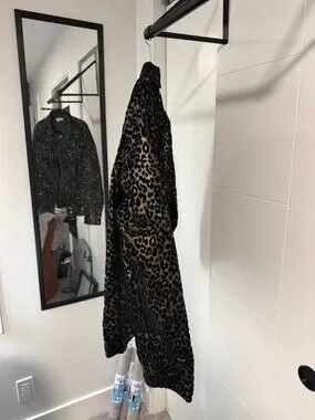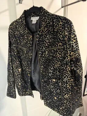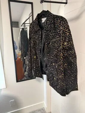 Roar into style with this fierce leopard print velvet jacket from Compliments—luxuriously soft fabric that purrs “bold and badass” without even trying. I slipped it on exactly once, dreaming of channeling my inner jungle queen, but reality hit: my wardrobe’s more “cozy catnap” than “prowling predator.” For years, it hung in the closet, whispering, “Come on, get wild!” But I’ve surrendered—my sweatpants claimed victory. Now, it’s in purr-fect condition, barely worn, with zippered pockets, snappy details, and that iconic spotted pattern ready to turn heads. Imagine zipping this baby up for an effortless edgy vibe, owning every room like the top of the food chain. Who’s ready to adopt this spotted stunner and let it loose on the world?