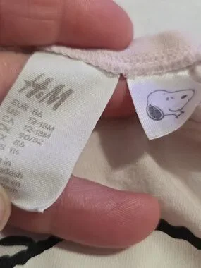 Girls cute short sleeved crew neck with snaps on one shoulder h&m snoopy tshirt. PIT TO PIT 11 length 12