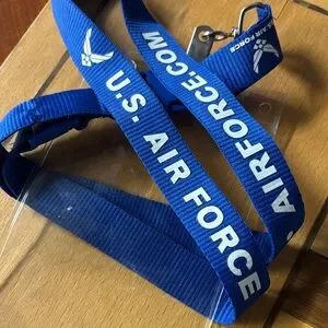 Blue lanyard featuring U.S. Air Force branding. Comes with a clear badge holder.