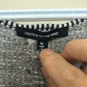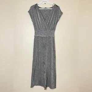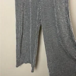 Caution to the Wind Black White Striped Jumpsuit M Smocked Waist V-Neck Wide Leg