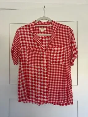 Anthropologie Red and White Gingham Button-Down Shirt by Maeve