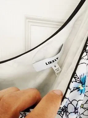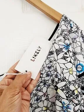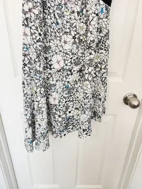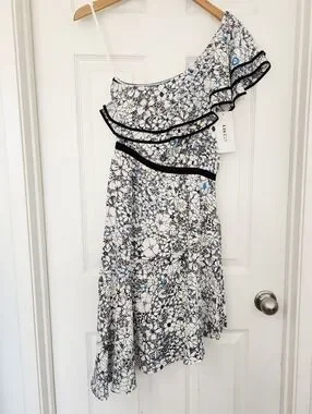 NWT Likely One-Shoulder Floral Ruffle Dress in White with Black Trim Size 0