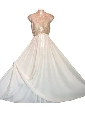 Vintage Ivory Lace Nightgown Plunge Bridal Boudoir ILGWU Union Made M