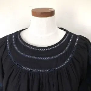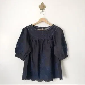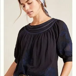 Anthropologie Navy Blue embroidered top