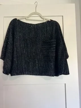 Textured knit top with subtle metalic speck detailing. Relaxed neckline and lightweight feel. Versatile piece for layering.