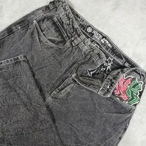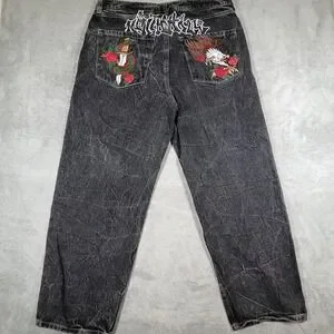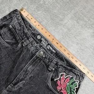 Ninth Fall Ambush Jeans Mens 36 Acid Wash Black Denim Embroidered Graffiti Snake
