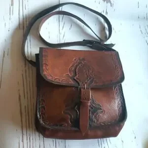 Vintage embosed floral brown crossbody bag