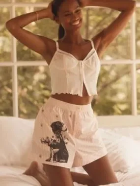 Anthropologie The Wren Boxer Shorts - pink striped with dog - LARGE - NWT