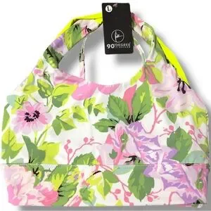 90 Degree | NWT $44 White Pink Green Floral Neon Sports Bra (size L)