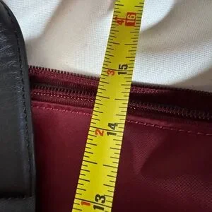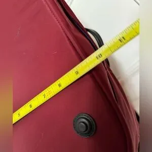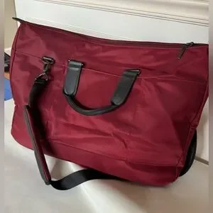 Pre-owned but not used. Burgundy & black. Plenty of exterior & interior pockets. Top zip closure. Adjustable shoulder strap. Plenty of interior pockets & laptop pocket. Model S150-2. About 22” by 15” H by 9.5” deep. Retails for $220.00