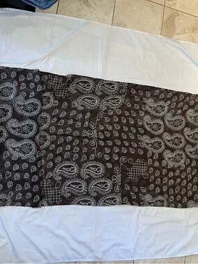 Lightweight brown scarf with white paisley print. Soft drape and fringe trim on both ends. Versatile accessory for casual or dressy looks. This is a beautiful good quality stole. Messege Message me for any questions. No refunds