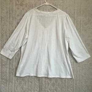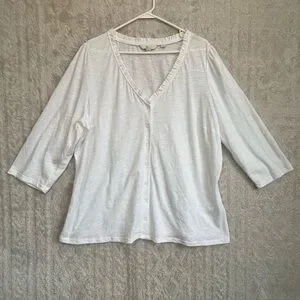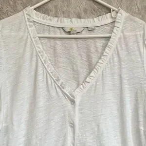 Boden Ivory Cottagecore Cotton Button Up Blouse Sz 22R Ruffle Neck Minimalist