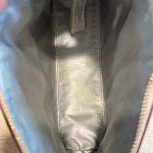 Gorgeous pink glitter zip closure cosmetic bag. Gold hardware, gray interior. 6x8