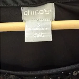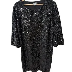 Chico’s Size 3 16/18 Black Sequined Bell sleeves Mid Length Cocktail Dress