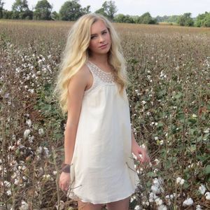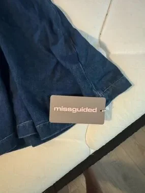 Dark blue denim halter dress with fitted bodice and flared skirt. Square neckline and visible topstitch detailing. Versatile and on-trend for casual outings.