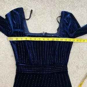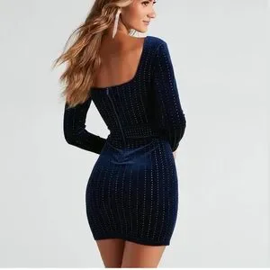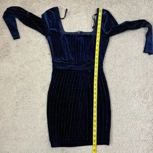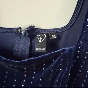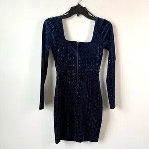 Windsor Katrina Long Sleeve Rhinestone Velvet‎ Dress Midnight Blue XS