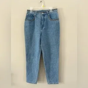 Vintage Hand Embroidered Ultra High Rise 90’s Cotton Denim Mom Straight Leg Jean