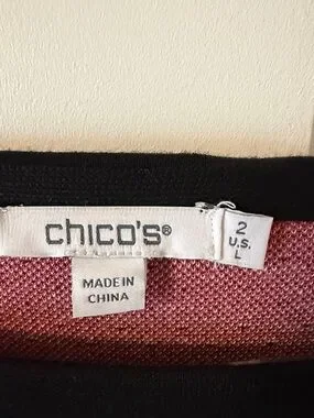 Chico's Black & Purple Floral Jacquard Roll Cuff Tunic Sweater size Large