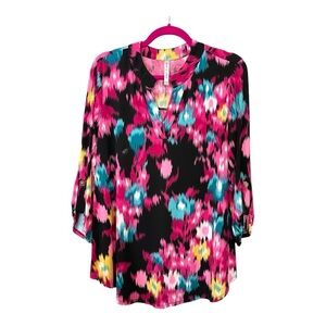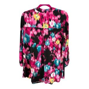 This beautiful Dear Scarlett blouse features a stunning floral print, perfect for adding a pop of color to your wardrobe. It’s lightweight and comfortable with a flattering fit. The blouse is made from 94% polyester and 6% spandex, providing a soft, stretchy feel. The loose fit runs larger than standard sizes, making it ideal for a relaxed, casual look. Hand wash recommended.
