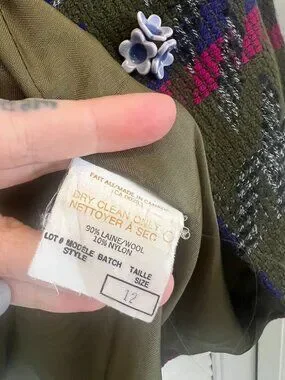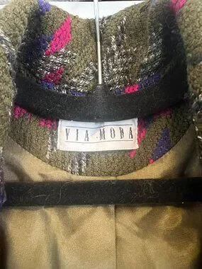 Such a fun statement piece - the colours on this are so good in person. Kind of an olive base with pink + blue woven through.