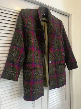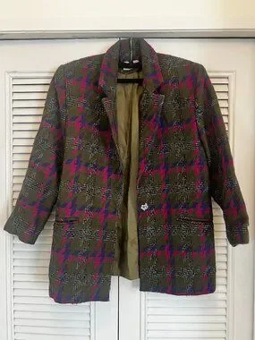 Vintage oversized blazer | olive houndstooth | statement jacket (M)