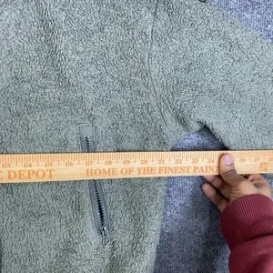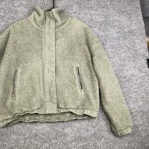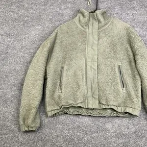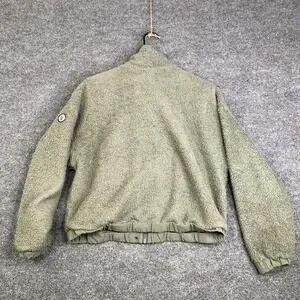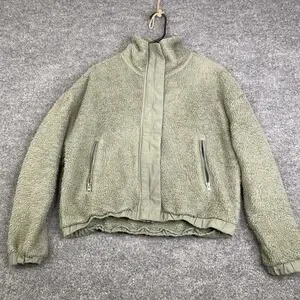 Vuori Sherpa Fleece Jacket Womens Medium Green Full Zip Lined Pockets Cozy