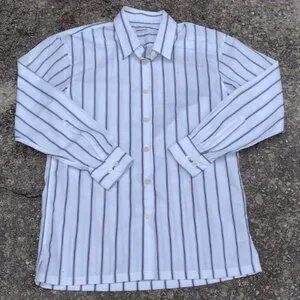 Oversized striped cotton poplin tunic shirt by Dries Van Noten. Clean, architectural silhouette with a relaxed, editorial feel. Designed to wear loose — works beautifully as a unisex, gender-neutral piece.