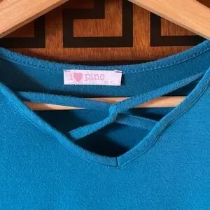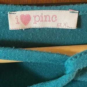 I Love Pinc Girls XL Blue Tie Front Short Sleeve Tee Boho Casual Top