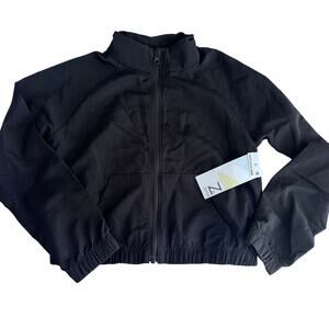 It features a full zip front and a trendy cropped length. The jacket is brand new with tags, so you can be sure it's in excellent condition.