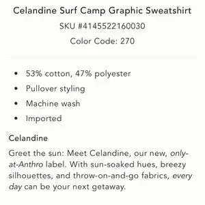 RESERVED for @kpharvey —Celandine NWT Surf sweatshirt;super cute. XXS/XS