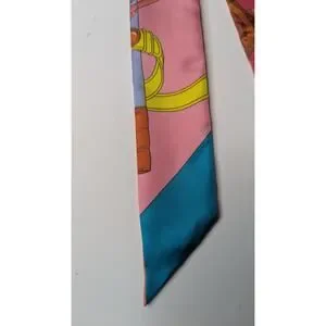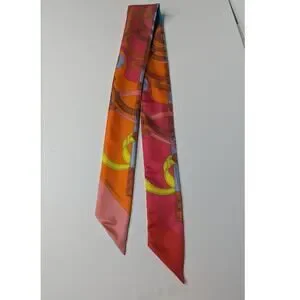 Elevate your style with this stunning Hermes colorful designer twilly scarf! This exquisite silk accessory is in excellent pre-owned condition and comes complete with its original box, making it a perfect gift or a lovely treat for yourself.