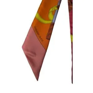 Crafted from luxurious silk, this authentic Hermes Twilly features a vibrant, eye-catching pattern that will add a pop of color and sophistication to any ensemble. It's incredibly versatile – use it to adorn your favorite handbag handles for a chic statement, tie it in your hair for an elegant touch, or wear it as a slender neck scarf to elevate your look.