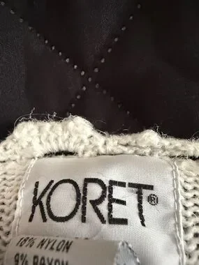 🕰️ Dating this piece: The 5-digit RN# 85653, “Made in Macau” label, intact shoulder pads, and ornate 3D beaded embellishment all point firmly to late 1980s–early 1990s — the golden era of Koret’s most elaborate knitwear. Koret of California was one of America’s most beloved women’s sportswear labels from the 1950s through the 1990s, known for quality and craftsmanship. This is genuine vintage, 30+ years old.