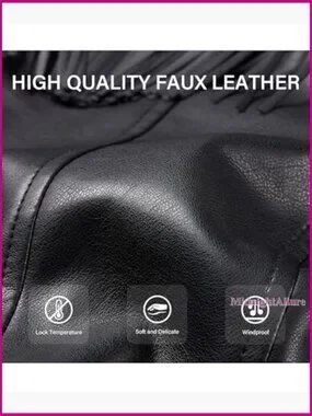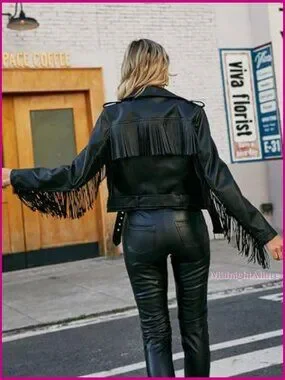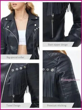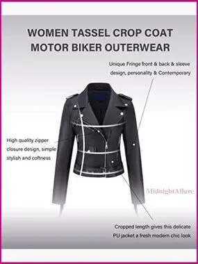 Short Faux Leather Moto Jacket with Tassel Trim and Belt