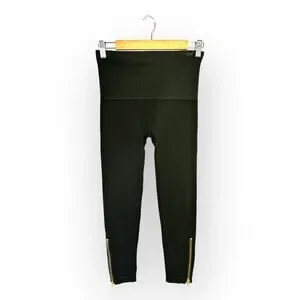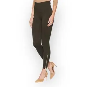 Spanx Women's Look At Me Now Seamless Side Zip Leggings M Olive Green Zip Leg