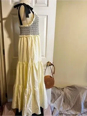 Amazon Smocked Tiered Ruffle Tie Shoulder Festival Cottagecore Peasant Dress S