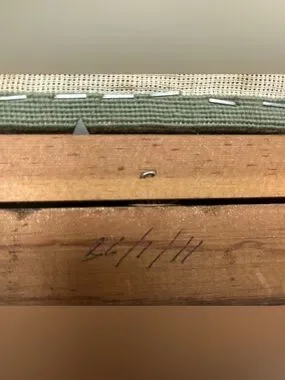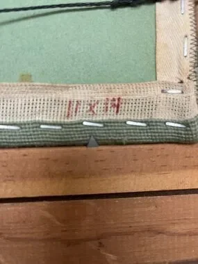 Excellent vintage condition. The stitching remains vibrant and tight. The frame shows minimal age-appropriate wear