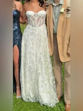 Floral Embroidered Corset Dress Size 6 Prom Wedding Guest Ivory