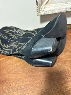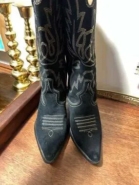 Wilsons Leather Black Suede Tall Western Cowboy Boots with Contrast Stitching