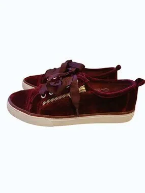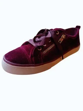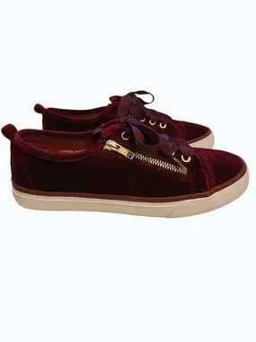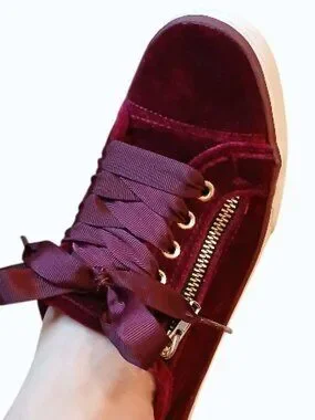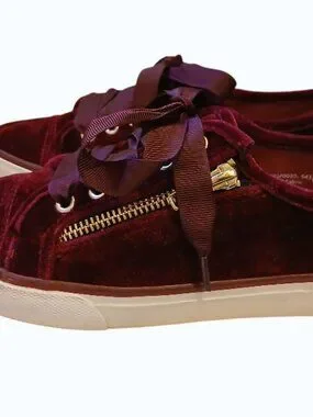 NOT RATED Red/Burgundy Velvet Gold Zipper Satin Lace Sneakers