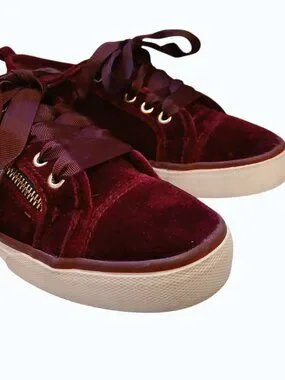 NOT RATED Red/Burgundy Velvet Satin Laces Sneakers