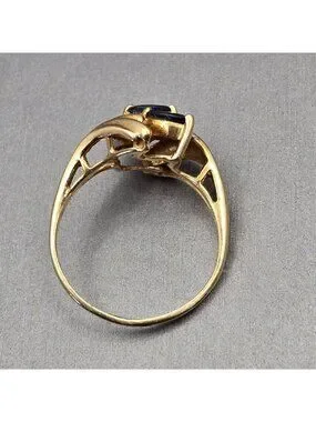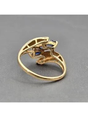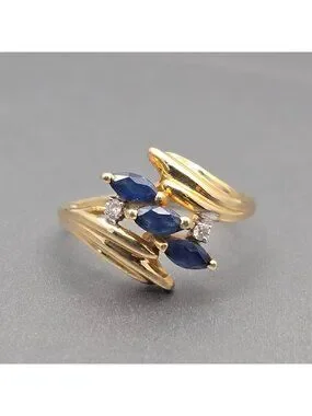 10k Gold Ring Size 7 3 Marquise Sapphire & 2 Diamond Accents Signed Cardow