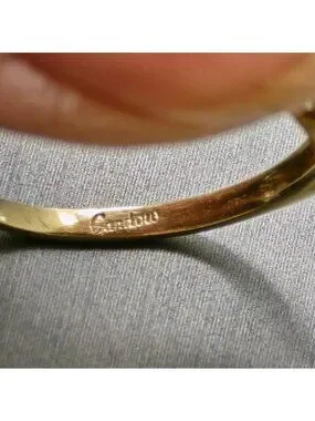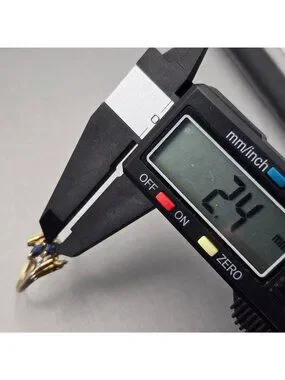Elegant 10k gold ring featuring three deep blue marquise sapphires flanked by two sparkling diamond accents. The split shank band adds graceful movement and timeless charm. Signed by Cardow and sized at 7, this piece is ideal for collectors or anyone seeking a refined statement ring. Preowned with light wear.