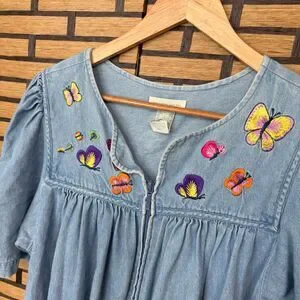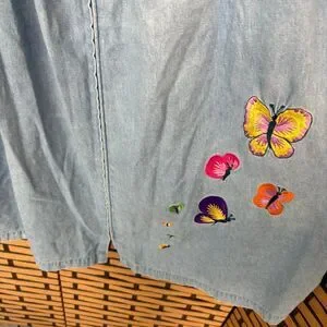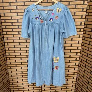 Bechamel Denim Zip Up Butterfly Embroidered Dress Size Medium Petite