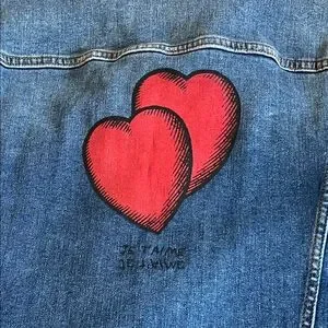 The Zadig & Voltaire “Kase Heart” Denim Jacket is a modern, edgy take on the classic jean jacket—featuring a medium-blue wash, clean tailored lines, and a striking red-heart back graphic with “Je t’aime de la nuit” embroidery. This versatile piece adds instant personality to any outfit and layers beautifully through multiple seasons. Style it with your favorite tees and joggers, over a slip dress, or paired with black denim for an elevated casual look.