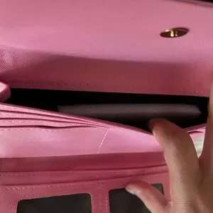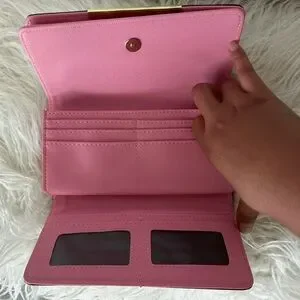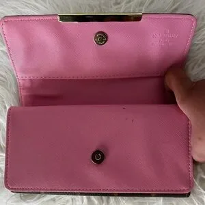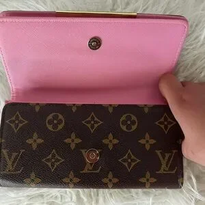 Louis Vuitton Brown Monogram Wallet with Pink Trim and Gold Hardware